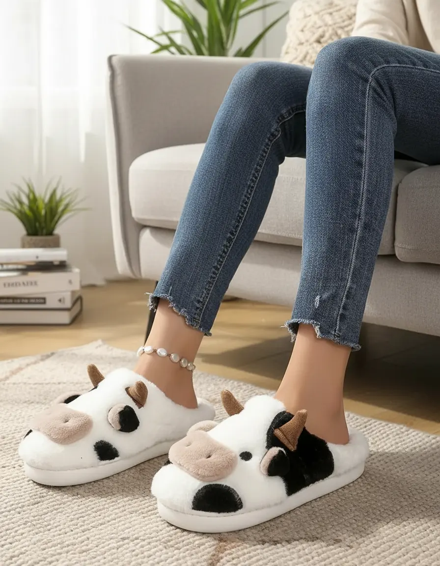 El precio original era: $ 850,00.$ 765,00El precio actual es: $ 765,00.Pantuflas Vaca Vaquita Peluche Súper Suaves