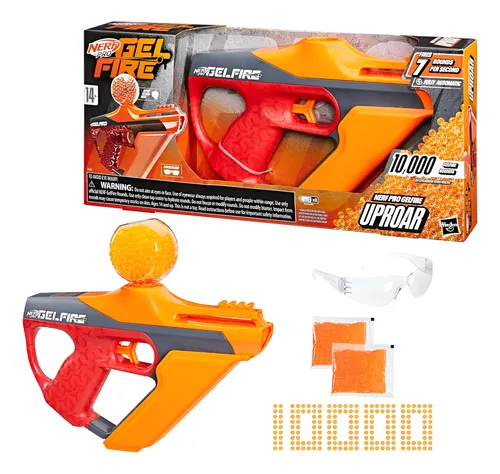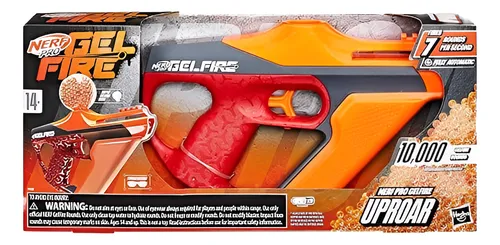 LANZADOR NERF PRO GELFIRE UPROAR: ¡Dispara en modo automático con el lanzador Nerf Pro Gelfire Uproar! Requiere 8 pilas alcalinas AA de 1,5 V (no incluidas)